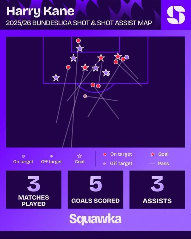 5球3助!凯恩前3轮独造8球是德甲有统计以来最多,共计仅7次射门