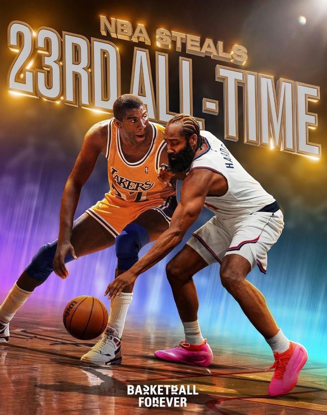 2.抢断数超过魔术师升至NBA历史第23位;