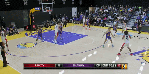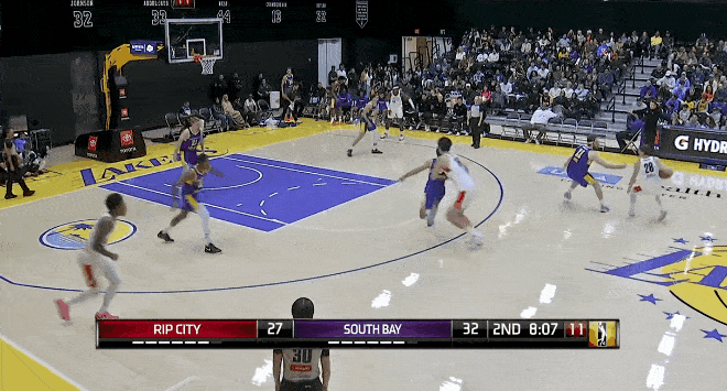 北京时间11月17日NBA G联赛,撕裂之城混音对阵南湾湖人的比赛正在进行中。