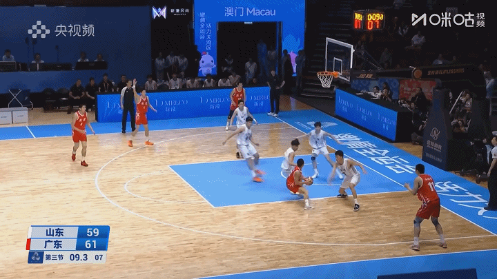 次节,山东队方面张博源增加了个人的冲击,广东在第二节上来还是依靠米少杰和夏振峰两人在外线的冲击力和投射去保证进攻火力。替换上来的蓝逸朗先是中侧步中距离,然后又底线发炮命中,成为本节奇兵。