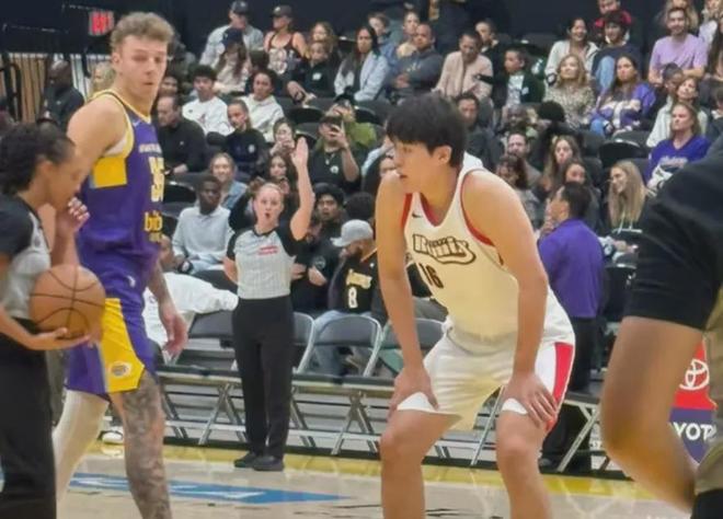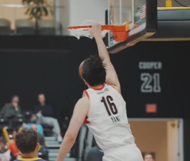 南湾湖人的11号内线德鲁·蒂米确实活力满满,但是杨瀚森也能打对手一个守转攻。