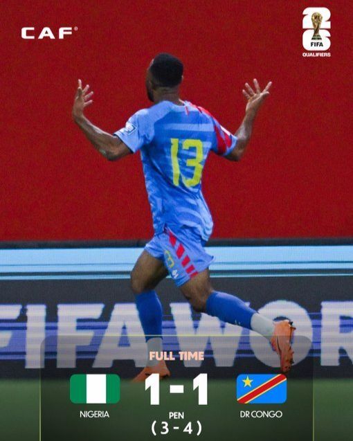 在北京时间11月17日结束的世界杯非洲预选赛附加赛决赛中,“非洲雄鹰”尼日利亚,经过120分钟鏖战,1-1战平民主刚果。随后的点球大战,他们3-4不敌民主刚果,总比分4-5,无缘参加洲际附加赛,就此无缘美加墨世界杯。